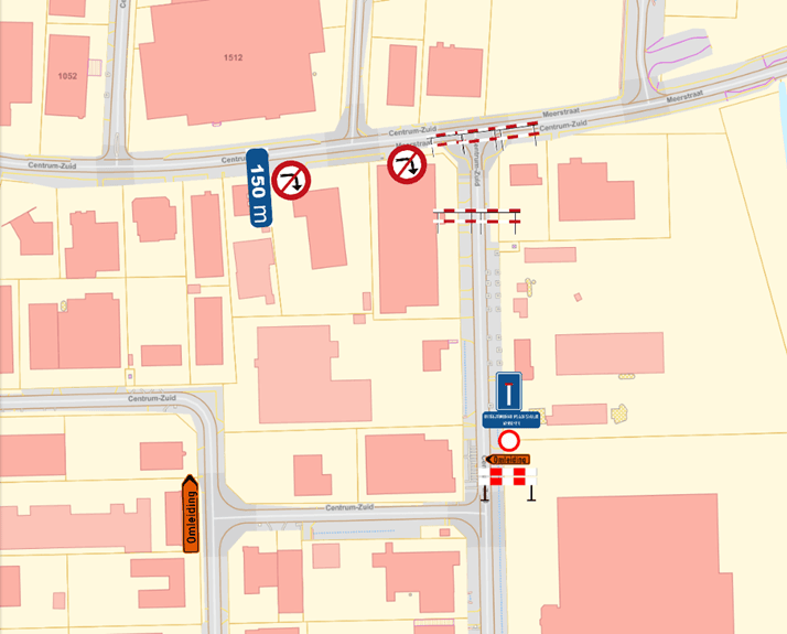 Vanop de Brugstraat/ Meerstraat zal men ook niet rechtsaf kunnen slaan richting het zuidelijk industrieterrein, maar men zal verder moeten rijden naar het kruispunt van de Quick, de N74 richting de E314 nemen om zo via de oprit van de autosnelweg het zuidelijk industrieterrein te kunnen bereiken.